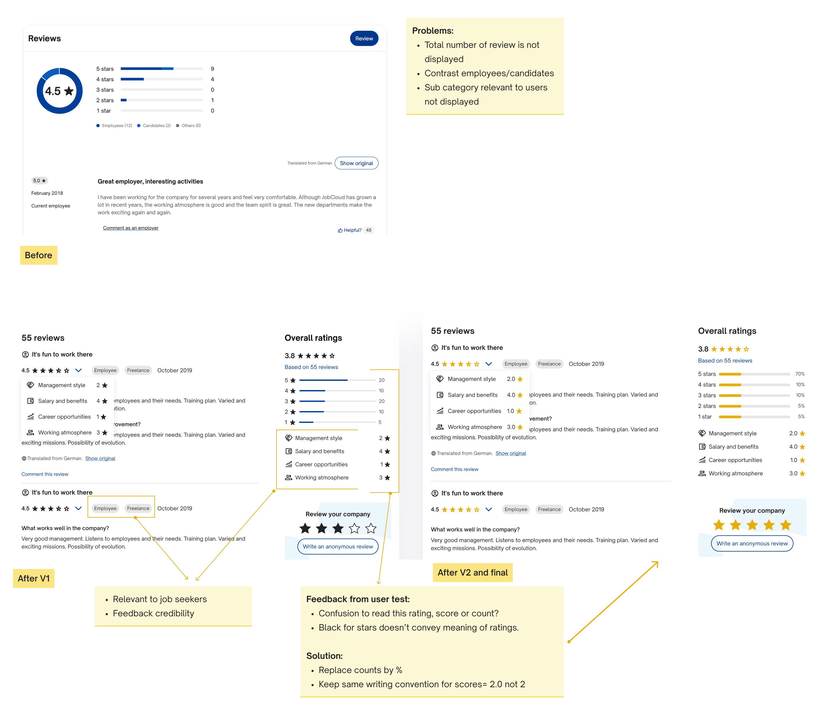 2. How can we improve the display of overall ratings and show other relevant information that job seekers need to assess a company?